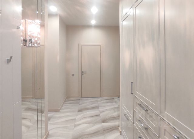 • Встроенная техника: холодильник, индукционная варочная панель, духовой шкаф с СВЧ, фильтр для питьевой воды, вытяжка, посудомоечная машина
