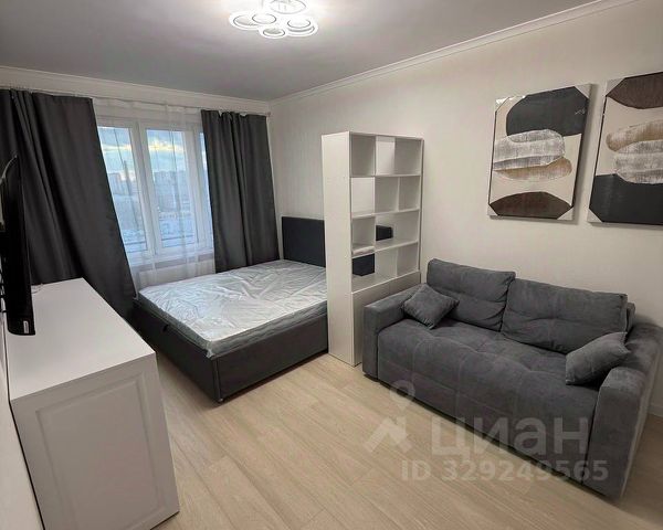 Комнаты полностью меблированы: в гостиной располагаются разборный диван, компьютерный стол, консоль с телевизором, книжные шкафы; в спальне — просторный шкаф-купе с зеркалом, двуспальная кровать , туалетный столик, стеллаж. Кухня оборудована гарнитуром Мария с посудомоечной машиной, холодильником, СВЧ-печью, вытяжкой; варочная панель газовая, духовка электрическая; есть обеденный стол и стулья.