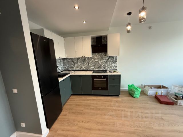Всё, что нужно: варочная панель, вытяжка, духовка, микроволновка, мультиварка, чайник, стиральная машина, новый фильтр для питьевой воды. Холодильник вынесли в коридор для увеличения пространства. Есть раскладной диван на 2 спальных места, раскладной стол и рабочая зона зеркалом. Жалюзи и можно повесить шторы. Всего 8 розеток.