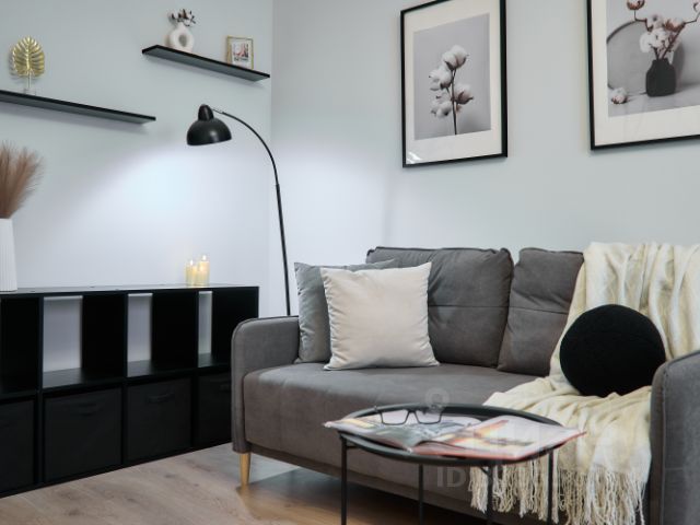 Уютная студия-апартамент состоит из прихожей, кухни-гостиной, спальни и ванной комнаты.