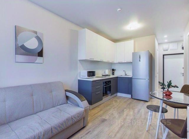 - кухня с обеденной зоной, СВЧ, плита, посудомоечная машина, холодильник