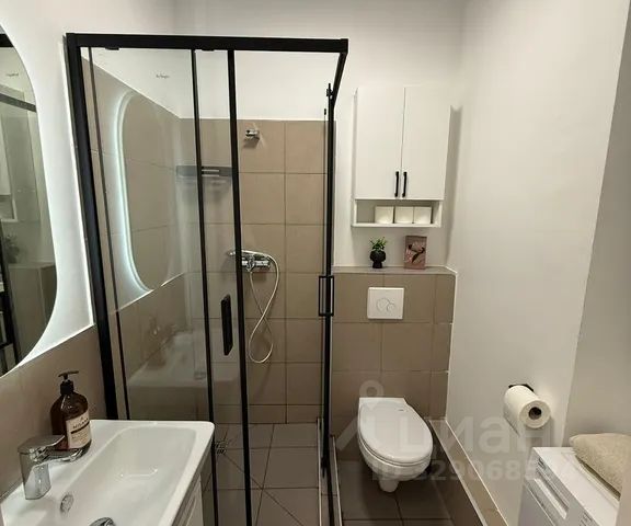 Быт без забот: На кухне есть всё необходимое: холодильник, варочная панель, микроволновка, электрочайник, фильтр для воды, вытяжка. В ванной — стиральная машина, также доступны утюг и фен.