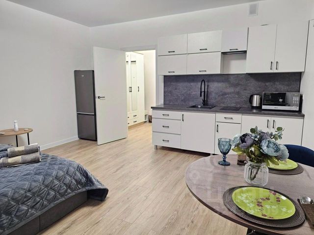 Просторная студия -29м2, двуспальная кровать, удобный диванный уголок, который раскладывается в двухспальную кровать. В квартире - тихо, окна выходят на закрытый зеленый двор. В этом-же здании — магазины, кафе, рестораны, пекарни, пункты доставки.