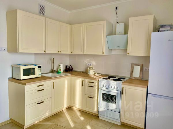 Кухня с чайником, фильтром для воды, газовой плитой (с легким умным включением), кастрюлей, сковородкой, столовыми приборами, штопором, кружками, бокалами для вина, стаканами, ножами, холодильником с морозилкой, микроволновкой, столом для обеда, четырьмя стульями.