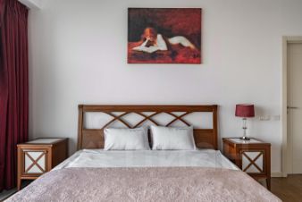 Кроме того, в апарте угловая спальня с собственным ТВ, где установлена кровать king-size, и большие шкафы - для любителей путешествовать не налегке.