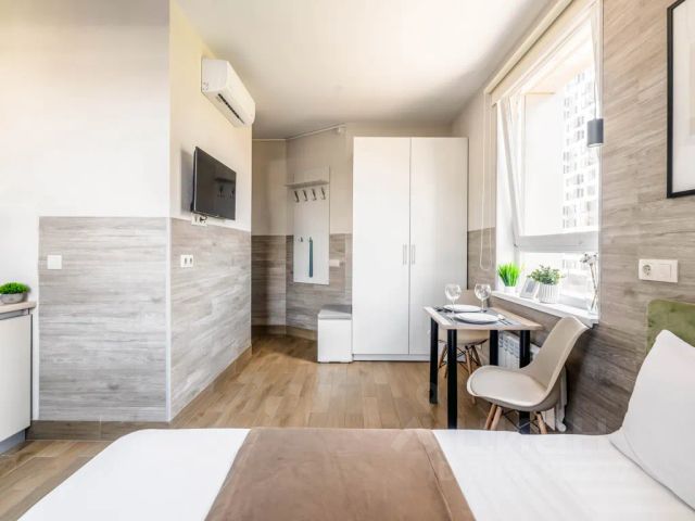Удобная студия около м. Сходненская. Круглосуточное дистанционное заселение. Оплата- переводом, по расчётному счету. Для комфортного проживания есть всё необходимое: кондиционер, холодильник, стиральная машина, чайник, посуда, кухонная плита, микроволновая печь, ванные принадлежности, постельное бельё, средства личной гигиены. Предусматривается заселение до 3 человек. Размещение более 2 человек, трансфер, дополнительный спальный комплект, проживание с животными, вечеринки, отчётные документы и услуги горничной - за дополнительную плату. Залог 4000 рублей за весь период проживания. Залог меняется от количества человек и длительности проживания. Залог возвращается в течение трех суток. Необходимо поддерживать чистоту. Предусмотрены штрафы за курение, утерю ключей и шум после 22:00 от 2000 до 5000 рублей. Время заезда: 15:00 Время выезда: 12:00 Ранний заезд, поздний выезд и почасовое продление по договорённости. Почасовое продление 400-600 рублей в час. Удобная локация. В зоне шаговой доступности находятся: супермаркеты, кафе, скверы для отдыха, детские площадки, медицинские учреждения. До метро Сходненская 19 минут пешком. Около дома бесплатная парковка. Дистанционное заселение в квартиру происходит по полной предоплате, это обязательное условие, так как вы получаете доступ к жилью и вас в этот момент никто не сопровождает и не контролирует. Иные случае и изменения политики заселения в вашем конкретном случае возможно согласовать с менеджером по заселению и решаются по его усмотрению. Единоразово оплачивается уборка 1000р Нам необходимо подтвердить вашу личность для дистанционного заселения . Пожалуйста, подготовьте фотографию вашего паспорта, на которой вы держите его рядом с лицом, и фото на которой будет четко видна страница с пропиской. Убедитесь, что информация на фотографии читаема. Все данные будут использоваться исключительно для подтверждения вашей личности и останутся конфиденциальными. Спасибо за ваше понимание! Бронь( оплата апартаментов) не возвратная. Бронь может быть заморожена и использована для последующего проживания по соглашению сторон. Будем рады разместить вас в Москве, арендуйте в любое время квартиру посуточно!