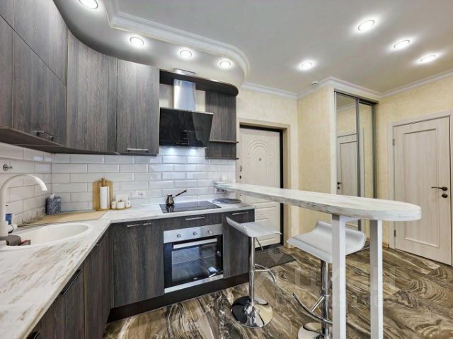 Евродвушка с большой кухней-гостиной 26м2 и отдельной спальней 14м2. Вход в подъезд оборудован пандусом.