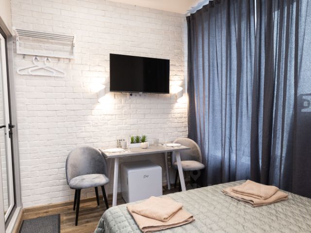 - Для Вас вся бытовая техника три тв, два кондиционера, Интернет, стиральная машина, фен, утюг, гладильная доска. Чистое постельное белье и полотенца. Только современная декоративная штукатурка - никаких обоев.