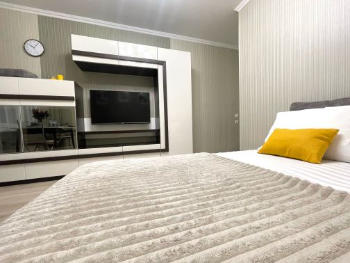 - В спальне: Кровать king-sizе 180*200 с анатомическими подушками и качественным матрасом для уютного сна. Шторы блэкаут. Тишайший двор. ТВ напротив кровати.