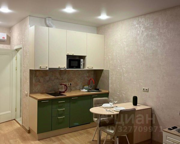 В кухонной зоне установлена Кофемашина, варочная панель, чайник, микроволновка, духовой шкаф, фильтр для воды, посудомоечная машина, холодильник, а также имеется необходимая для приготовления и приёма пищи посуда.