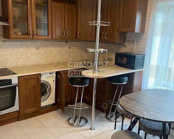 Квартира с косметическим ремонтом, обставлена необходимой мебелью на кухне и в комнатах. Из техники есть кондиционер, холодильник, посудомоечная машина, телевизор и стиральная машина. Ванная комната оборудована ванной, а санузел совмещенный. Также в квартире есть балкон и мусоропровод.