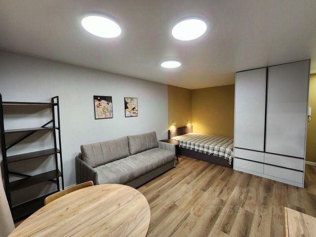 Просторная комната / кухня / раздельный СУ / из комнаты выход на застекленный балкон. В квартире сделан хороший ремонт. Квартира чистая и ухоженная, светлая и теплая. Установлены пластиковые стеклопакеты. Для комфортного проживания квартира укомплектована всей необходимой новой мебелью и бытовой техникой, включая 2-х камерный холодильник Indesit, стиральную машину-автомат Indesit, газовую плиту Gefest, электрический чайник, печь СВЧ Samsung, телевизор LG, пылесос и пр. На кухне - мебельный гарнитур, обеденный стол со стульями. В комнатt - 2-спальная кровать, кресло, платяной шкаф и пр.