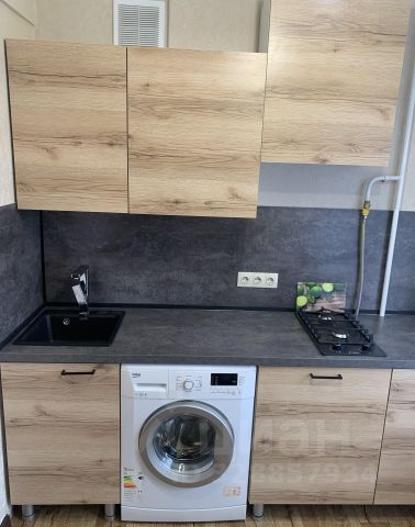 Квартира оборудована всей необходимой для проживания мебелью и техникой: диван-кровать, кухонный гарнитур, плита, стиральная машины, холодильник, микроволновка, чайник, рабочие зоны.