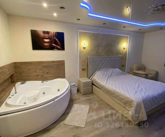 Большая кровать с удобным высоким ортопедическим матрасом средней жёсткости. Также как дополнительное спальное место можно использовать диван двуспальный, размер 140 на 200., шкаф, многофункциональная кухня ( микроволновая печь, электрический чайник, индукционная варочная панель, холодильник, необходимая посуда для сервировки и приготовления).