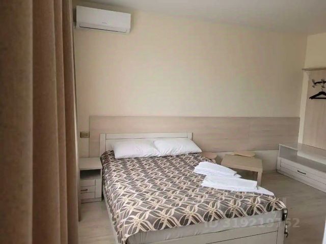 Спальные места: двуспальная кровать в комнате, раздвижной полутораспальный диван на кухне, манеж-кровать.