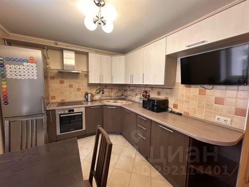 Кухня из натурального дерева. Большая каменная мойка, посудомоечная машинка Сименс. Холодильник Либхер. Газовые варочная панель и духовой шкаф. Тахта, на которой уютно смотреть телевизор. Большое окно, большой подоконник шириной 60 см и длиной 2 метра. Деревянный стеклопакет и деревянные жалюзи.