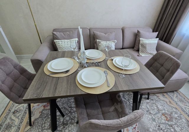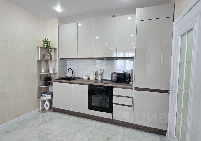 Квартира полностью готова к заселению — можно заехать в день просмотра. Установлена вся необходимая техника: холодильник, стиральная машина, электрическая плита с вытяжкой, микроволновая печь, чайник и телевизор 50 дюймов. Подключен безлимитный Wi-Fi.