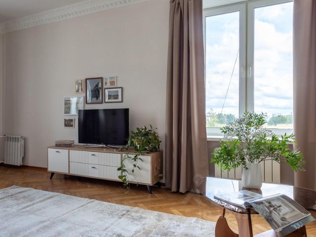 Захочется тишины — возвращайтесь домой. Здесь вас встретит мягкий диван, тёплый свет и приглушённая музыка. На столе пионы, вино, сырная тарелка. Если день прожит красиво — почему бы не поднять бокал? А после — спальня в дымчатых оттенках: для сна без уведомлений и предвкушения нового утра.