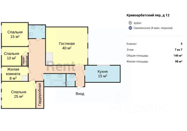 Лот 539293. Предлагается великолепная пятикомнатная квартира в отреставрированном дореволюционном особняке на Кривоарбатском переулке. Планировка: гостиная с обширным нависающим балконом (система хранения), кухня-столовая, три спальни, кабинет, два совмещенных санузла, гостевой санузел, две гардеробные, прихожая. Высота потолков - 3.8 м. Ремонт в уникальном авторском стиле, в отделке использовано муранское стекло, карельская берёза. Закрытый мансардный этаж. Видеонаблюдение. Квартира полностью меблирована, оснащена всей необходимой бытовой техникой для комфортного проживания. Удобная транспортная доступность. Развитая инфраструктура района. Стихийный паркинг во дворе дома. Есть возможность аренды машиноместа в подземном паркинге в соседнем доме за дополнительную плату. В квартире: Полностью меблированная, Посудомоечная машина, Стиральная машина, Бойлер, Душевая кабина, Теплые полы, Спутниковое/кабельное телевидение, Кондиционер, Охрана, Интернет, Можно с детьми, Можно с животными, Ванна, Интерьер в современном стиле, Сплит-система, Гардеробная, Лифт, Мебель в комнатах, Телевизор, Мебель на кухне, PLEASE FEEL FREE TO CONTACT US TO GET DETAILED INFORMATION. Квартиры с детьми в переулке Кривоарбатский в Москве.