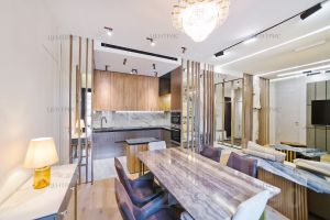 В квартире: С мебелью, Парковка, Посудомоечная машина, Стиральная машина, Сушильная машина, Бойлер, Теплые полы, Кондиционер, Охрана, Интернет, Балкон, Можно с детьми, Можно с животными, Вид на реку, Европланировка, Ванна, Лифт, Ремонт - дизайнерский, Кухонная мебель, Окна на улицу, Окна во двор