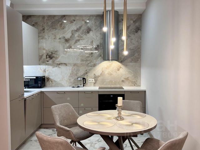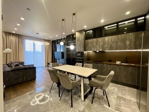 Варочная панель, духовой шкаф, микроволновая печь, стиральная машина, посудомоечная машина, теплые полы, встроенный холодильник, бойлер, кондиционер, большая кровать, обеденный стол из мрамора, разные сценарии освещения - все для комфортной жизни.