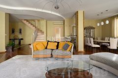 Состоит из холла, трех изолированных комнат, гостиной, зоны кухни, двух гардеробных, постирочной, двух лоджий, двух санузлов.