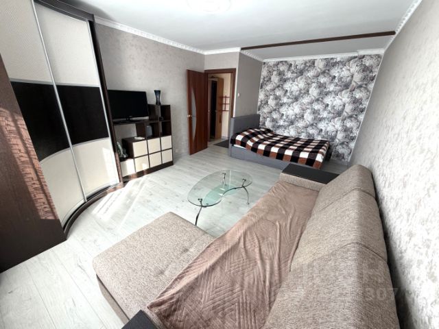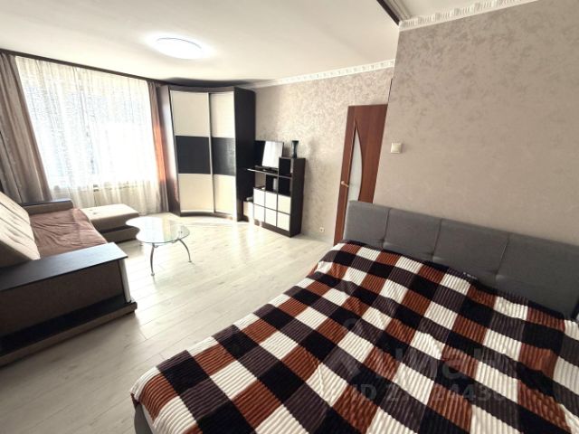 1 Спальня с Лоджией - двуспальная кровать с мягким изголовьем, шкаф-купе, столик с зеркалом, выход на Лоджию, телевизор.