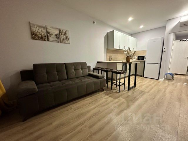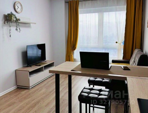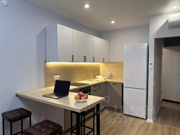 кухонный гарнитур со встроенной индукционной варочной панелью и конвекционным духовым шкафом, холодильник (Total NoFrost), микроволновая печь, вытяжка, кондиционер, двуспальная кровать с ортопедическим матрасом и коробом для хранения вещей, шкаф-купе, полноценное рабочее место (компьютерный стол и стул), шторы blackout, двухспальный ортопедический раскладывающийся диван (еврокнижка), обеденный раздвижной стол, стулья, стиральная машина, электрический полотенцесушитель с таймером отключения, раздвижная сушилка для белья, прихожая, пуфик, интернет: Wi-Fi.