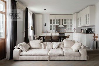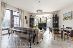 ID 25146. Просторная 4-комнатная квартира в ЖК Дом на Смоленской набережной в М. Новопесковском пер., 8, 2006 г. постройки. Естественное освещение (большие окна и высокие потолки 3.20), грамотное зонирование (отдельно общая и спальная зоны), круглосуточная охрана. Квартира меблирована, оснащена бытовой техникой, в гостиной и спальне установлен ТВ. В доме проведена приточно-вытяжная вентиляция, имеется система подогрева пола, беспроводной интернет. Общая площадь 210 квм., гостиная, зона кухни и столовой, три спальни, две ванные комнаты (ванна, душ), гостевой туалет, 3 гардеробные, хозблок, прихожая. Окна выходят в Проточный пер., видна набережная Москвы-реки. Планировка линейная. В доме 24/7 охрана, служба эксплуатации. Предусмотрена гостевая парковка (уровень стилобата), м/м в подземной гараже жильцы арендуют самостоятельно В шаговой доступности государственные и частные школы, кружки, спортклубы, супермаркеты, торговые центры и культурная жизнь р-на Арбата и Хамовников. В 2-х шагах метро Смоленская (Филевская и Арбатско-Покровская линии). Можно с детьми и домашними питомцами (питомцы обсуждается дополнительно). Сдается квартира с евроремонтом в округе ЦАО в Москве.