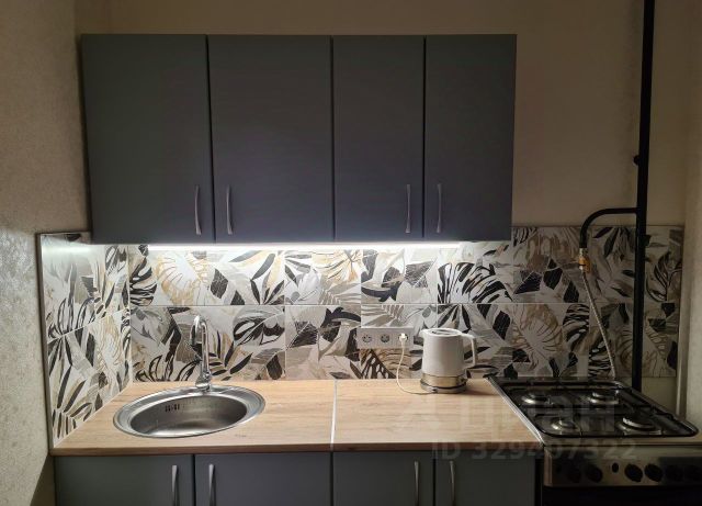 Кухня изготовлена на заказ в компании hoff, дверцы с доводчиками, барная стойка, позволяющая использовать её как рабочую зону для кухни, а также для приёма пищи. Оборудована подсветкой системы умного дома рабочей зоны кухни, а также встроенной варочной панелью и духовым шкафом, встроенной вытяжкой и отдельно стоящей микроволновой печью, посудой и столовыми приборами на 4 персоны, 2-мя бокалами. Стиральная машинка встроена в кухню, установлен холодильник indesit с функцией nofrost.
