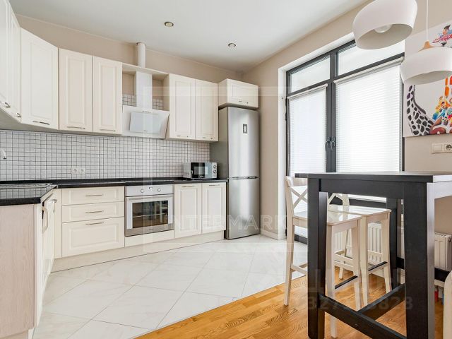 Установлена итальянская кухня со встроенный бытовой техникой премиальной немецкой марки NEFF, канальная система центрального кондиционирования на базе чиллер-фанкойл с пультами управления в каждой комнате, в санузлах теплые полы, в постирочной стиральная и сушильная машины LG, бойлер.