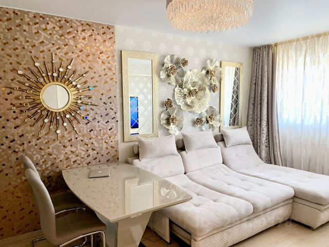 В квартире премиальная мебель и европейская бытовая техника: духовой шкаф Siemens, газовая варочная панель Siemens на 4 конфорки, холодильниr Bosch, микроволновая печь Neff, стиральная машина с опцией сушки Ariston. Нет посудомоечной машины. В комнате телевизор Samsung 55 дюймов. Есть кондиционер.