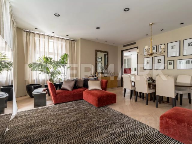 Номер объекта: 540666. Лот 540666. Бонус коллегам 50%! Предлагается стильная пятикомнатная квартира в реконструированном дореволюционном особняке. Дизайнерский ремонт. Планировка: кухня-гостиная с обеденной зоной и барной стойкой, две спальни со своими полноценными с/у, два кабинета (в одном из них также совмещенный с/у), гостевой с/у, постирочная, небольшая гардеробная при входе. Квартира меблирована, укомплектована всей необходимой для жизни бытовой техникой. Приточно-вытяжная вентиляция, подогрев полов, кабельное ТВ, высокоскоростной интернет. Огороженная, охраняемая территория, видеонаблюдение, охрана в подъезде. Презентабельная входная группа. Фиксированное машиноместо на наземной парковке под шлагбаум. В доме есть комната для водителей со своим с/у, боксы для хранения личных вещей, места для велосипедов в крытом гараже. В квартире: Полностью меблированная, Посудомоечная машина, Стиральная машина, Спутниковое/кабельное телевидение, Интернет, Можно с детьми, Можно с животными, Интерьер в современном стиле, Лифт, Мебель в комнатах, Телевизор, Мебель на кухне, PLEASE DO NOT HESITATE TO CONTACT US. Снять квартиру с евроремонтом в переулке Нащокинский в Москве.