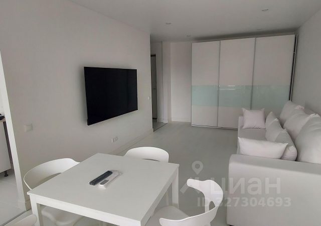 В студии установлены: Встроенный кухонный гарнитур, мойка, посуда для плиты, микроволновая печь, места кухонного хранения закрытые шкафы, широкий подоконник, встроенная барная стойка, высокий барный мягкий стул, диван-кровать двуспальный 120 на 2000,шкаф с пуфиком, зеркало большое, полочка,высокая раковина,зеркальный шкафчик в ванной, современная с глубоким поддоном удобным душевая кабинка, сушилка настенная.