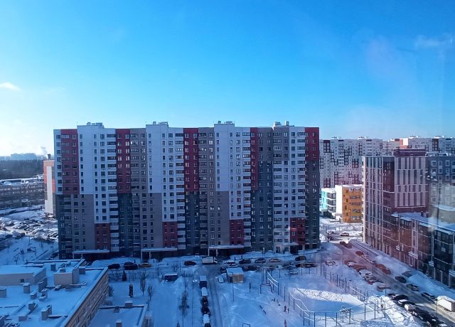 Квартира расположена на 14-м (последнем) этаже, окна выходят на сторону района с видом на живописные закаты. Высокий этаж и удачная планировка обеспечивают тишину и уединение. Просторная комната позволяет организовать рабочее место, зону отдыха или пространство для хобби.