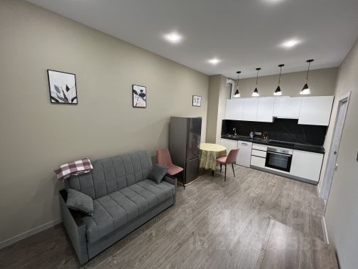 В квартире есть вся необходимая мебель для комфортного проживания. Кухня-гостиная студийной планировки: кухонный гарнитур со встроенной бытовой техникой.