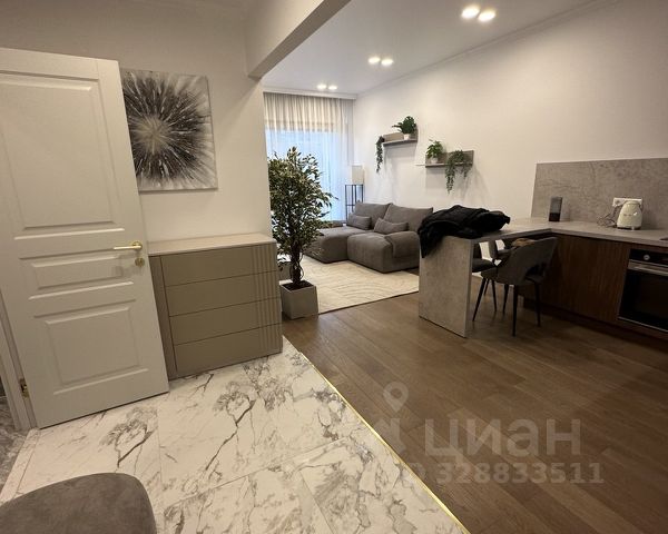 Всего 10 минут пешком до метро. Современный монолитный дом 2018 года постройки, высокие потолки 3,2 м, окна во двор — тихо, светло и просторно. Уникальная планировка: Квартира разделена на две полноценные зоны — спальня с диваном и кроватью и гостиная-кухня с дополнительным диваном. Это позволяет жить вдвоём совершенно комфортно: можно отдыхать, работать или смотреть кино, не мешая друг другу. Евроремонт, продуманное освещение — уютно даже в хмурый день. Кухня и техника: На компактной кухне (3 м²) с помощью эргономичной планировки разместилось всё необходимое: варочная панель, мини-духовка, микроволновая печь, посудомоечная машина, навесной стол — просторно и функционально. В квартире также есть холодильник, стиральная машина, кондиционер, телевизор, интернет, полотенцесушитель и просторный шкаф для хранения. Что платить: УЖЕ ВКЛЮЧЕНО в сумму аренды: квартплата, консьерж. Ваши расходы — только коммуналка по счётчикам (вода/электричество) и интернет. Сдается от собственника — только на ЦИАН. Никаких посредников, комиссий и лишних звонков.