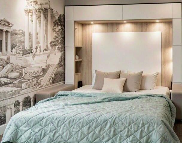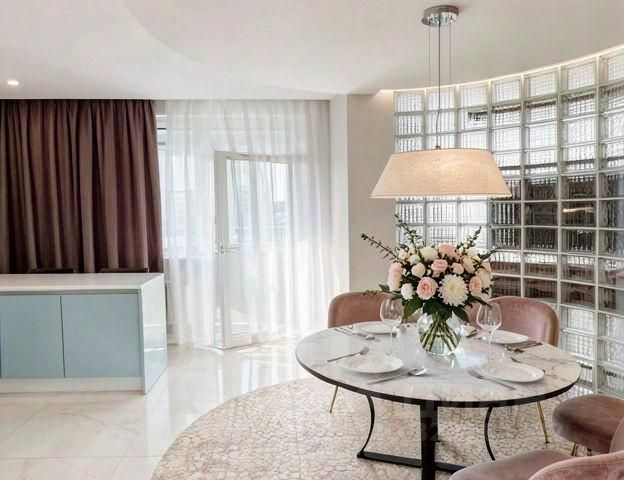 Отделка выполнена в современном стиле с использованием высококачественных черновых и отделочных материалов. Квартира полностью меблирована и оснащена техникой для комфортного проживания. В кухне-гостиной: кухонный гарнитур под единой столешницей с встроенной техникой (варочная панель и духовой шкаф Bosch, вытяжка, посудомоечная машина) холодильник, микроволновая печь LG, чайник, обеденная группа, раскладной диван, ТВ зона. В спальне: полноценная двухспальная кровать, дизайнерские прикроватные тумбы, имеется место для дополнительного рабочего стола. В прихожей органично вписаны вместительные гардеробные шкафы для одежды и вещей (для каждой вещи найдется место для хранения!). В санузле качественная сантехника Grohe (Германия), стиральная машина, установлены качественная немецкая инженерная арматура и датчики от протечек.