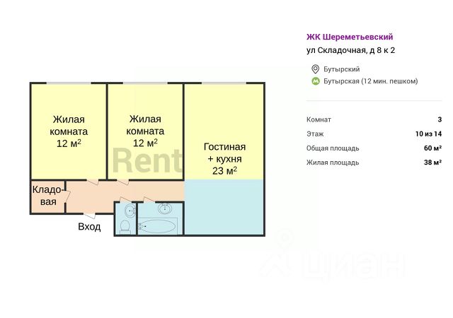 Представляем вашему вниманию Евро-4 комнатную квартиру площадью 80,3 кв.м. квартиру в ЖК " Шереметьевский ".