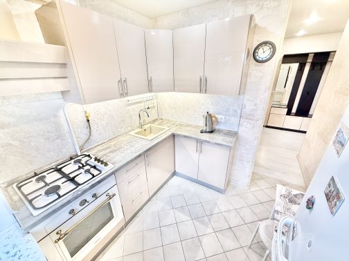 Квартира полностью меблирована, есть все необходимое для жизни. На кухне: встроенная кухня Мария, большой двухкамерный холодильник, индукционная варочная панель на 4 конфорки, духовой шкаф, вытяжка, посудомоечная машина, стол, три стула. На окне тонкий тюль, есть необходимая новая посуда (тарелки, чашки и др.)
