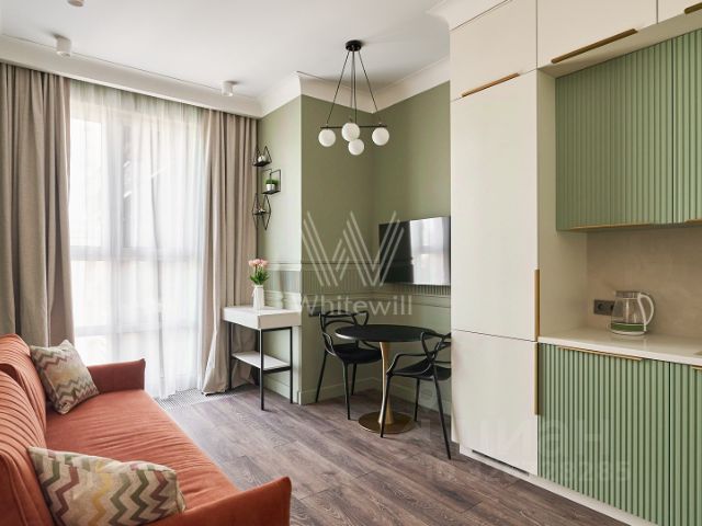 Уютная квартира с 1-й спальней общей площадью 38 м² в комплексе бизнес-класса "Вереск". Выполнен новый дизайнерский ремонт в неоклассическом стиле в пастельных тонах. Панорамное окно в гостиной наполняет пространство естественным светом. Окна выходят в тихий двор. Спланирована кухня-гостиная с раскладным диваном, изолированная спальня с вместительным шкафом, гардеробная с постирочной зоной, санузел с душевой, прихожая с гардеробной у входа. Квартира полностью укомплектована мебелью и бытовой техникой Weissgauff, включая микроволновку и духовой шкаф. Кухня оснащена фильтром для питьевой воды, измельчителем для пищевых отходов, индукционной плитой и подходящей для неё посудой. Установлены кондиционеры в обеих комнатах, трубчатый радиатор в спальне и конвектор на кухне, защита от протечек. Квартира оборудована сенсорными выключателями с кнопкой мастер-света, стиральной машинкой с функцией сушки и двумя телевизорами. Предусмотрено машиноместо в подземном паркинге за дополнительную плату. Комментарий эксперта. Меня зовут Елизавета Никишина — брокер компании Whitewill. Я отвечаю за аренду этого лота. Свяжитесь со мной, чтобы получить расширенную презентацию, больше фотографий или договориться о просмотре. Могу провести экскурсию по локации и познакомить вас с этим домом. ID 2 199.