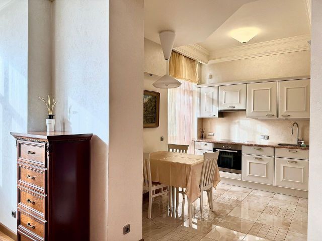 Главное о квартире: третий этаж, 159 метров, гостиная, кухня со столовой, мастер-спальня с своей ванной и гардеробной, две детских, гостевой санузел, постирочная, гардеробная в прихожей. Техника Kuppersbusch. Виды во двор и на МГУ. Можно с детьми, а вот с домашними животными не получится.