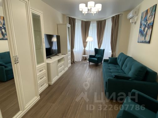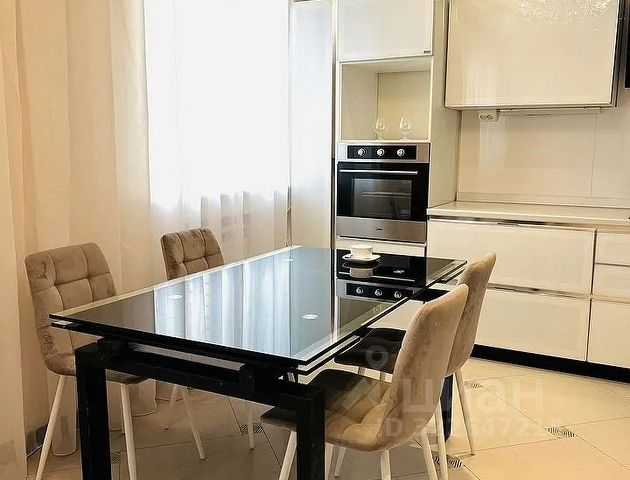 В квартире есть вся необходимая мебель для комфортного проживания. Кухня-гостиная студийной планировки: кухонный гарнитур со встроенной бытовой техникой.