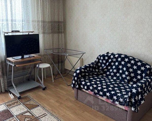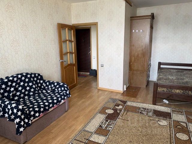 В спальне — двуспальная кровать, тумбочки, вместительный шкаф и туалетный столик. В гостиной — раскладной диван и тумба. Пространство отлично подойдет как для спокойной жизни вдвоем, так и для молодой семьи.