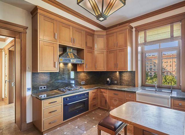 ID 45954. Прекрасная 4-комнатная квартира в премиальном комплексе Садовые кварталы в центре Хамовников. Выполнен дизайнерский ремонт в стиле современной классики. Полы выложены натуральным деревом и крупным светлым керамогранитом. Квартира полностью укомплектована мебелью и бытовой техникой, включая кондиционирование, посудомоечную и стиральную машины, бойлер, подогрев полов. Общая площадь: 170 кв. м. Планировка: гостиная, кухня-столовая, основная спальня с гардеробной и ванной комнатой, 2 спальни, 2 ванные комнаты, постирочная, холл. В одной из спален предусмотрен выход на балкон с панорамным остеклением. Из окон открывается вид на стадион Лужники, здание МГУ и в благоустроенный двор. Высокие потолки украшены подвесными люстрами. В стоимость входит 1 машино-место в подземном паркинге и кладовое помещение. В ЖК имеется премиальный фитнес-клуб World Class. Во дворе пруд. В квартире: С мебелью, М/место в подземном паркинге, Посудомоечная машина, Стиральная машина, Сушильная машина, Бойлер, Душевая кабина, Теплые полы, Спутниковое/кабельное телевидение, Видеонаблюдение, Охрана, Интернет, Балкон, Можно с детьми, Изолированная кухня, Ванна, Кондиционер, Гардеробная комната, Лифт, Ремонт - дизайнерский, Кухонная мебель, Окна на улицу, Окна во двор. Сдаю квартиру с мебелью станция Лужники (МЦК).