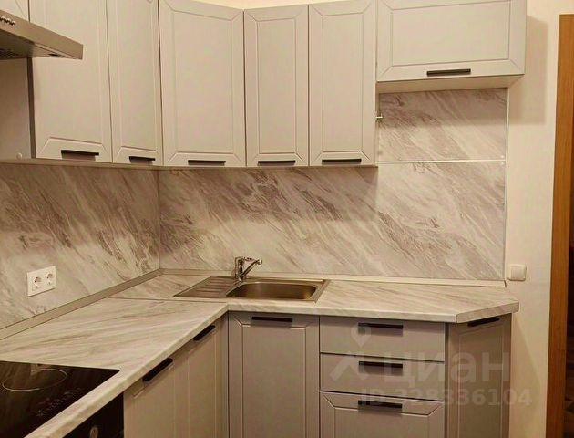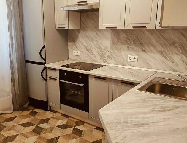 Кухня оснащена всем необходимым: двухкамерный холодильник, микроволновая печь, обеденный стол, кухонный гарнитур, духовой шкаф, вытяжка, а окна выполнены из ПВХ-панелей.