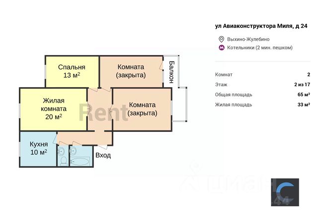 От года, комм. платежи включены (без счётчиков), комиссия 55%, залог 65 000 ₽
