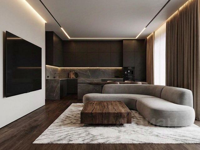 | Просторная кухня-гостиная для приёма гостей и комфортной ежедневной жизни.