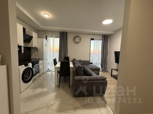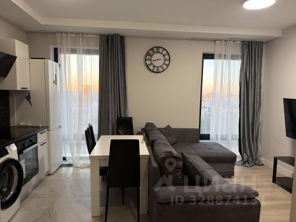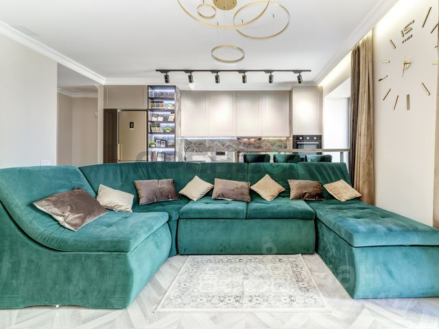 Просторное пространство для ваших посиделок. Большой диван, полноценный обеденный стол, кухня с техникой (плита, духовка, холодильник, вытяжка). Можно готовить, принимать гостей и смотреть кино — не мешая друг другу.