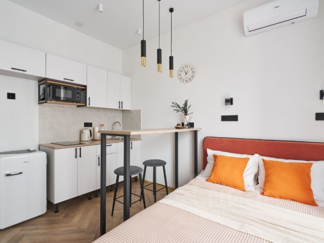 КРУГЛОСУТОЧНОЕ ЗАСЕЛЕНИЕ! Дизайнерская студия в новом ЖК Донской квартал. Проведите время в просторной квартире с абсолютно новым и стильном ремонтом. Комплекс находится в Донском районе - в пешей доступности от метро Тульская. Насладитесь видом на Москву, расположившись на удобном диване, который является спальным местом. Дополнительным спальным местом является кресло на кухне, которое раскладывается в комфортабельную односпальную кровать. Большие окна открывают Вашему взору красоту дневного и ночного города с высоты птичьего полета. Функциональная планировка - кухня-гостиная, просторный санузел, вместительная гардеробная при входе. ВАШИ ПРЕИМУЩЕСТВА - вся необходимая мебель для проживания: 2 спальных места: комфортный раскладывающийся диван и кресло на кухне, места для хранения вещей и обеденная зона - кухонный уголок со всей необходимой посудой для приготовления ваших кулинарных шедевров - необходимая бытовая техника и приборы: телевизор, фен, утюг, стиральная машина, плита, кондиционер, посудомоечная машина - скоростной WI-FI, Спутниковое ТВ - полотенца, постельное белье, шампунь/гель/мыло - Удаленное заселение УСЛОВИЯ ПРОЖИВАНИЯ - Зaeзд c 14:00 выeзд дo 12:00: пo согласованию pанний заезд и поздний выeзд - Служба поддержки работает с 08.00 до 23.00 - Оплата оставшейся суммы вносится за 24 часа до заезда или в день заезда - Дополнительно оплачивается сбор за уборку 1700 руб (1 раз за весь период проживания) - Заключение и подписание официального Договора-оферты онлайн при бронировании до заезда через сервис ОkiDоki НАШИ ГАРАНТИИ - Соответствие квартиры фотографиям - Заключение официального договора - Генеральная уборка с использованием дезинфицирующих средств после каждого выезда гостей - Предоставление квитанции об оплате и отчетных документов по запросу ПРАВИЛА ПРОЖИВАНИЯ - Запрещено проводить мероприятия, курить внутри квартиры - Коммерческие фото и видео съемки по предварительному согласованию - Проживание возможно с 18 лет !Квартира сдается верифицированным агентством Смарт хост, работающим на рынке недвижимости более 8 лет, на текущий момент у компании в управлении более 150 объектов проживания Снять квартиру-студию на 3 дня в районе Донской в Москве.